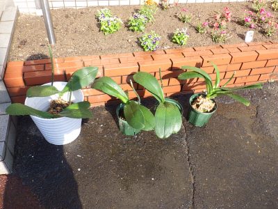 そして花の終わった胡蝶蘭も、株分けして水やり。