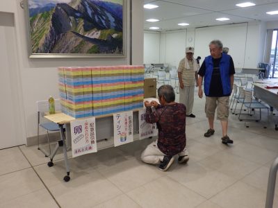 自社西側にある広告版を見て、近所のおじさんが立ち寄りました。